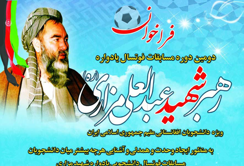 ثبتنام تیمهای دانشجویی افغانستانیهای مقیم ایران جهت شرکت در دومین دوره مسابقات فوتسال یادواره رهبر شهید استاد عبدالعلی مزاری آغاز شد.