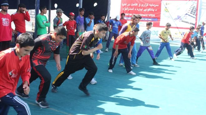 در منطقه شاه شهید کابل جوانان پشت دیوارهای بلند همچو سربازان در حال تمرین هستند. آنها برای تمرین نظامی نه بلکه برای آموزش عملی کریکت آمادگی می‌گیرند.