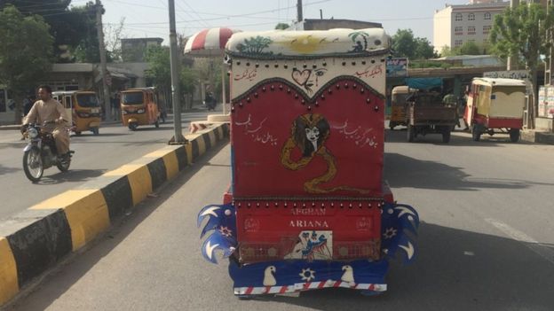 به نظر میرسد که حالا در هرات در غرب افغانستان، شعرها و نوشتههای جذاب عامیانه بیشتر به جای اینکه بر پشت کامیونها یا خودروها/موترهای تیزرفتار و کوچک، نگاشته شوند، بر پشت سه چرخهها یا ریکشاهای موسوم به 'زرنج ' خطاطی میشوند.
